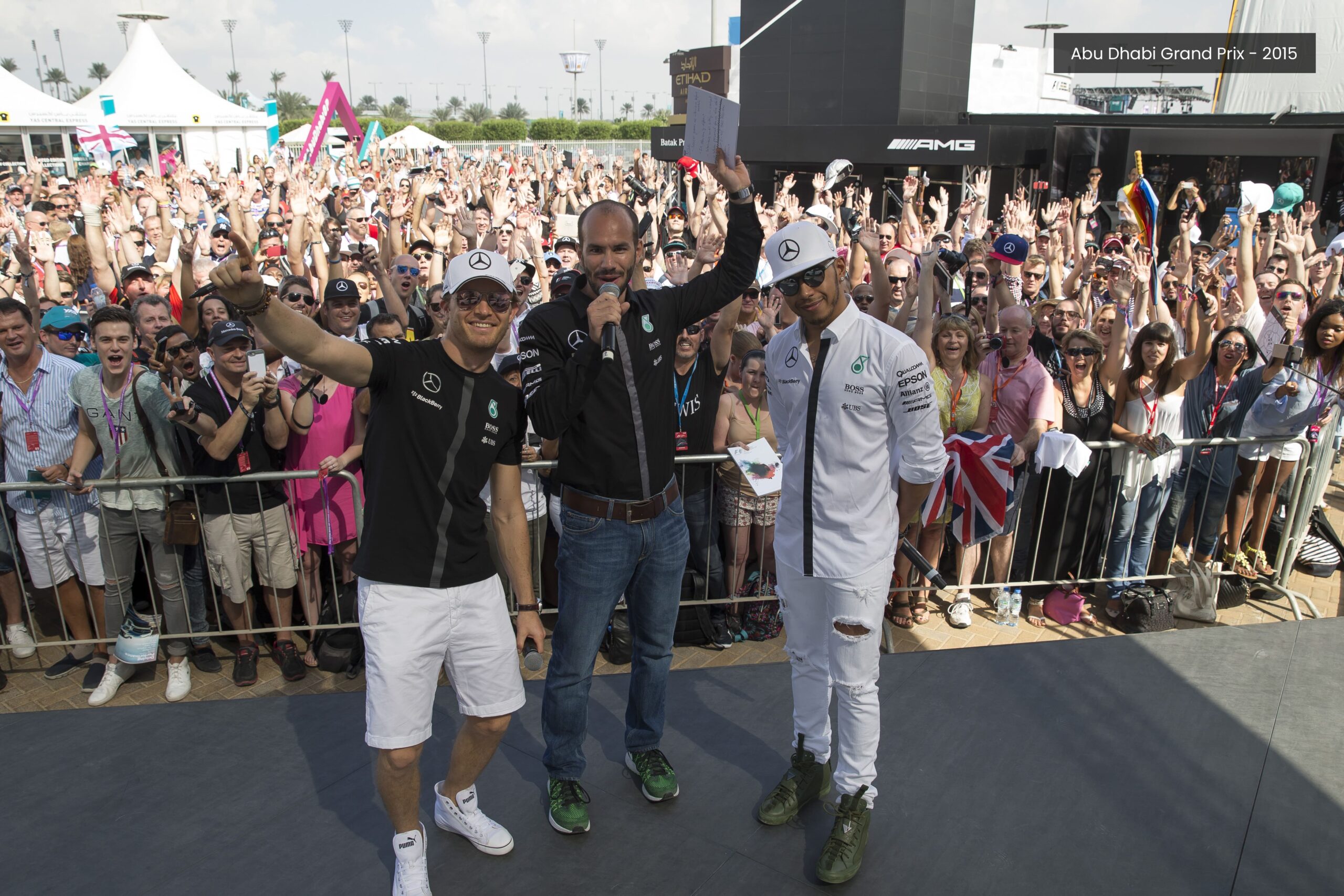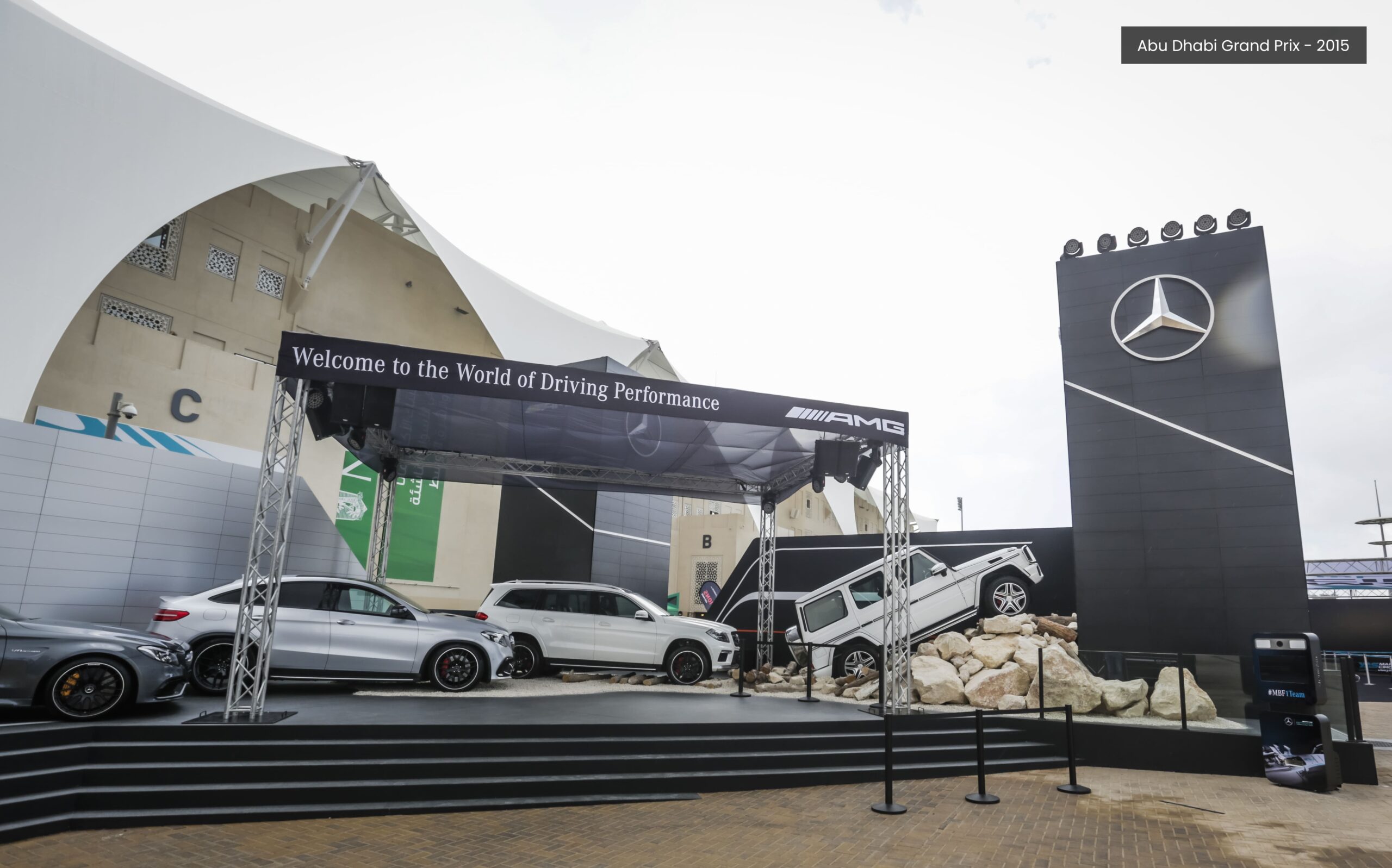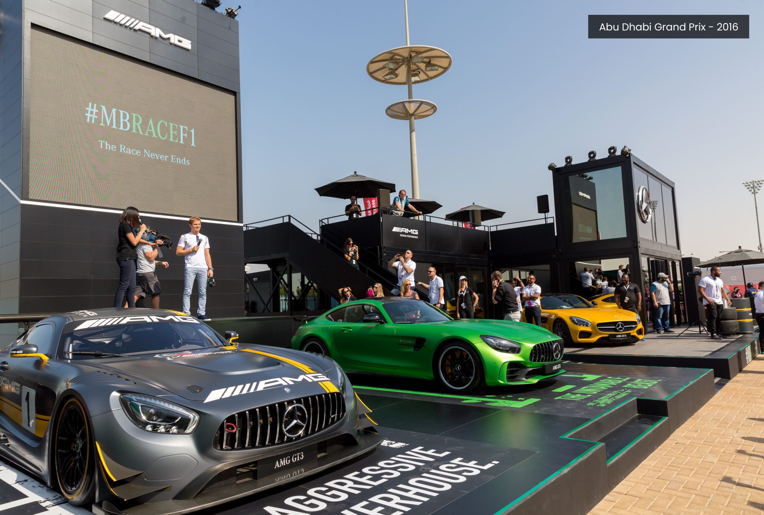 The event attracted over 20,000 fans and featured an ingeniously designed modular showroom and lounge deck, completed with a DJ booth, setting the perfect ambiance for the Formula 1 weekend’s celebrations. The AMG-themed stand hosted team champions Lewis Hamilton and Nico Rosberg for pre-race interviews and fan meet-and-greets, providing an unforgettable experience to visitors.